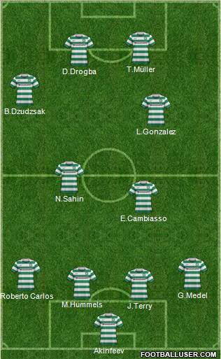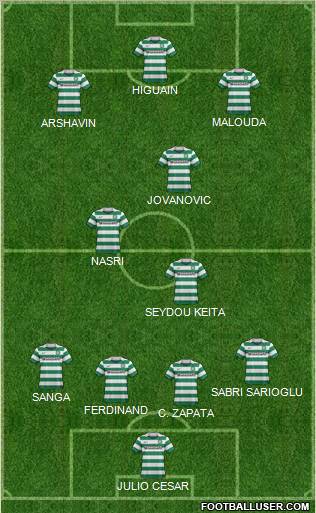 Pletikosa (GK) · Chigrinsky (CB) · Dunne (CB) · Ledley (LB) · Cuellar (RB) · Wanyama (DMF) · Brown (CMF) · Iličić (CM) · Di Natale (LMF) · Danny (RMF) · Cardozo (CF)