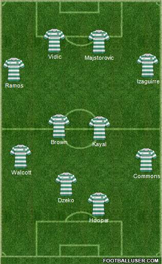 Stokes · Hooper · Commons · McCourt · Ledley · Kayal · Wilson · Izaguirre · Majstorovic · Mulgrew · Westwood