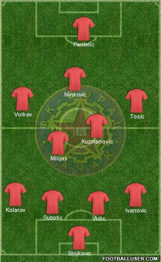Stojkovic · Vidic · Subotic · Ivanovic · Kolarov · Milijas · Kuzmanovic · Tosic · Volkov · Ninkovic · Pantelic