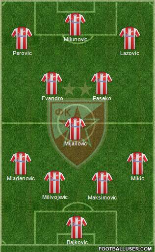Bajkovic · Cosic · Maksimovic · Mladenovic · Stojkovic · Milivojevic · Evandro · Milunovic · Lazovic · Kasalica · Ozegovic