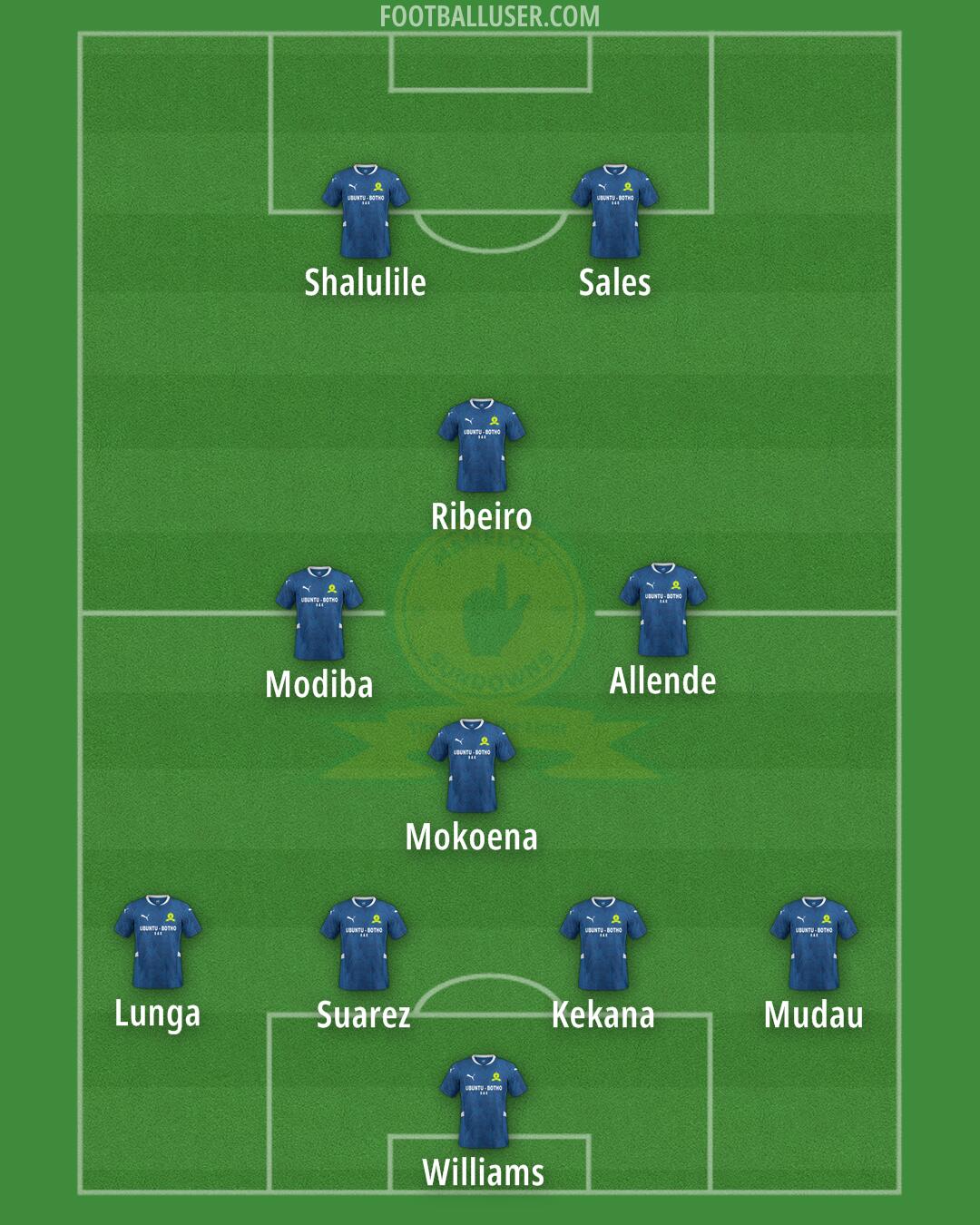 R. Williams (J. February) · K. Cupido (G. Kekana) · M. Mvala (M. Khoza) · L. Suarez (M. Lebusa) · T. Mokoena (R. Coetzee) · M. Esquivel (N. Nkosi) · M. Allende (J. Adams) · K. Kodisang (K. Lethlaku) · T. Matthews (T. Maseko) · L. Ribeiro (L. Mothiba) · I. Rayners (P. Shalulile)