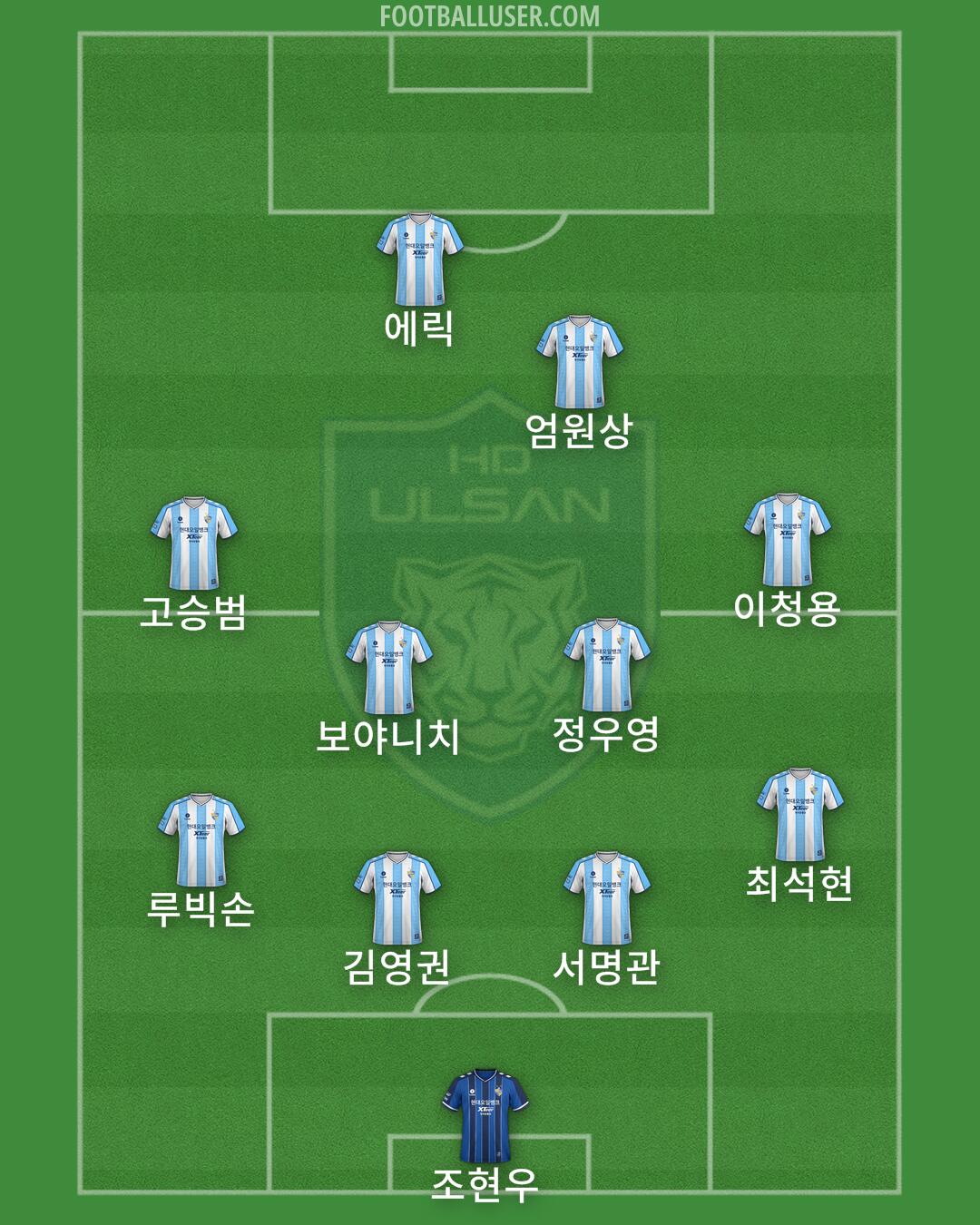 조현우 · 김영권 · 이재익 · 서명관 · 박민서 · 강상우 · 보야니치 · 이진현 · 백인우 · 에릭 · 루빅손