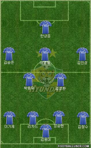 김용대 · 김치곤 · 리차드 · 김창수 · 이명재 · 박용우(56' In) · 타쿠마 · 이영재 · 오르샤(85' Out) · 김인성(56' In) · 김승준