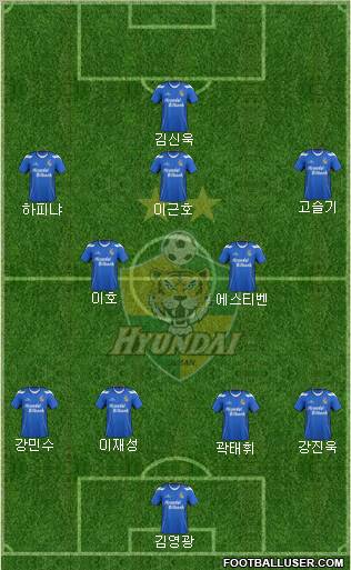 김영광 · 김영삼 · 곽태휘 · 이용 · 김치곤 · 에스티벤 · 고슬기 · 김승용 · 이호 · 김신욱 · 하피냐