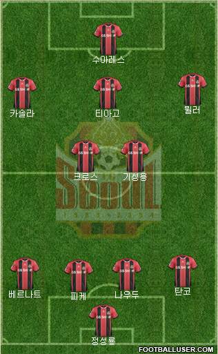 1 유현 · 15 김원식 · 26 김남춘 · 27 고광민 · 5오스마르 · 6 주세종 · 8 신진호 · 2 다카하기 · 10 박주영 · 9 데얀 · 11 아드리아노