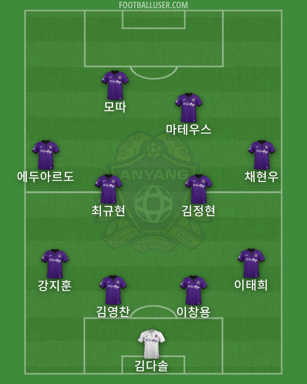 모따 · 마테우스 · 야고 · 에두아르도 · 김정현 · 김영찬 · 권경원 · 최성범 · 김동진 · 이태희 · 김다솔