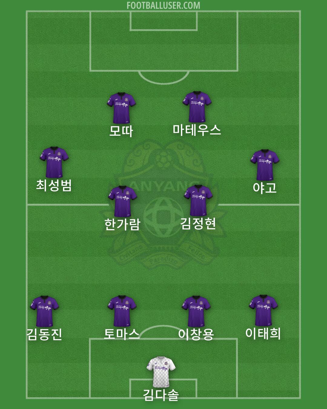 김다슬 · 토마스 · 이창용 · 김영찬 · 강지훈 · 리영직 · 에두아르도 · 이태희 · 야고 · 김운 · 마테우스