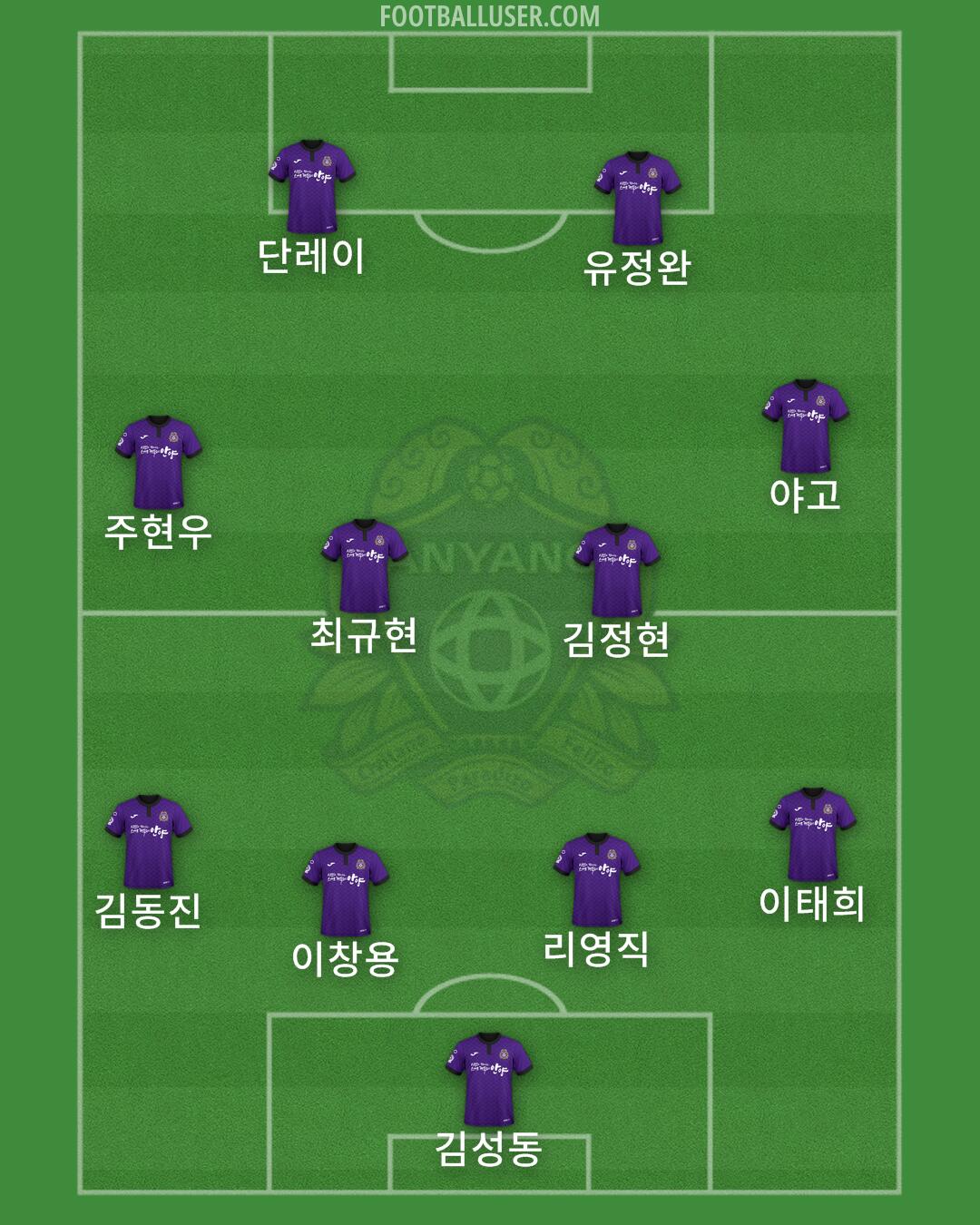 정민기 (이진형) (정민교) · 안드리고 (박병원) (조성준)(채현우) · 조규성 (단레이) (남궁도) · 야고 (김원민) (박성진) (정재희) (아코스티) · 리영직 (정재용) · 김정현 (최진수) (맹성웅) · 마테우스 (주현우)(최규현) · 이태희 (김태봉) (구대영) · 가솔현 (김효준) · 이창용 · 김동진 (이으뜸)