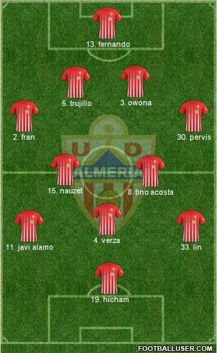 1. René · 3. Owona · 23. Morcillo · 21. Nano · 2. Rodríguez · 8. Tino Costa · 6. Mandi · 14. Alcaraz · 10. Pozo · 15. Nauzet · 9. Juan Muñoz
