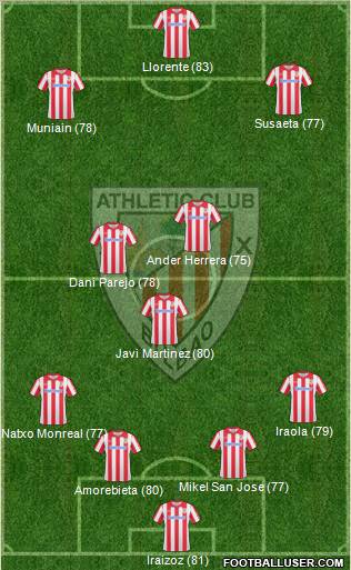 Llorente · Toquera · Susaeta · Muniein · Amorebieta · Ituraspe · Javi Martinez · Iraole · Ekiza · Mikel San Jose · Iraizoz