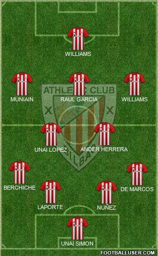 UNAI SIMON · VIVIAN · ALVAREZ · BERCHICHE · DE MARCOS · VESGA · HERRERA · MUNIAIN · SANCET · WILLIAMS · WILLIAMS