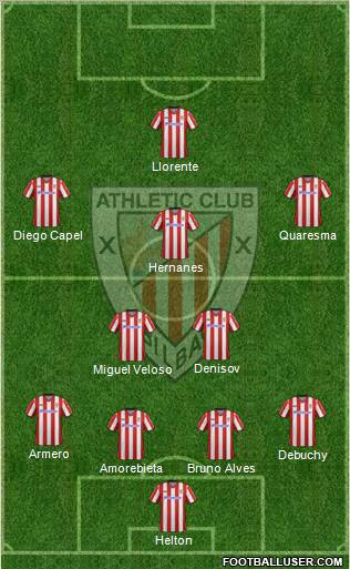 M. Bielsa · 1. G. Iraizoz · 5. F. Amorebieta · 6. M. San José · 15. A. Iraola · 3. J. Aurtenetxe · 8. A. Iturraspe · 18. C. Gurpegui=c · 10. O. de Marcos · 14. M. Susaeta · 19. I. Muniain · 9. F. Llorente