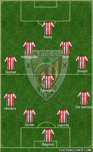 Begovic · Laporte · Ginter · Moreno · De marcos · Casemiro · Gomez · Shaqiri · Nainggolan · Isco · Remy