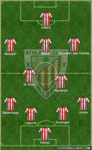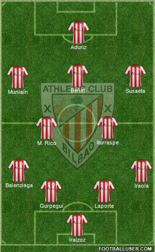Iraizoz · Gurpegi · Laporte · Balenziaga · De Marcos · Iturraspe · Mikel Rico · Muniain · Benat · Susaeta · Aduriz