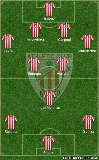 Iraizoz · Amorebieta · Gurpegi · Iraola · Aurtenetxe · Itturaspe · Herrera · Igor Martinez · Gomez · Susaeta · Aduriz