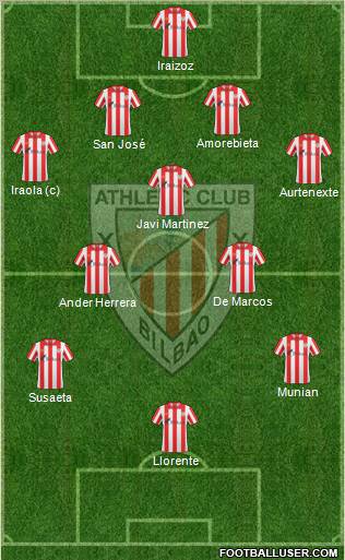 Llorente · Susaeta · Munian · Ander Herrera · De Marcos · Javi Martinez · Aurtenexte · Iraola (c) · San José · Amorebieta · Iraizoz