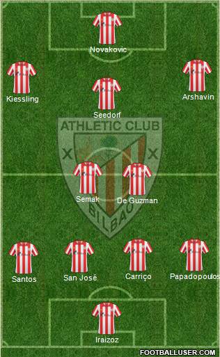 Iraizoz · Santos · San José · Carriço · Papadopoulos · De Guzman · Semak · Seedorf · Kiessling · Arshavin · Novakovic