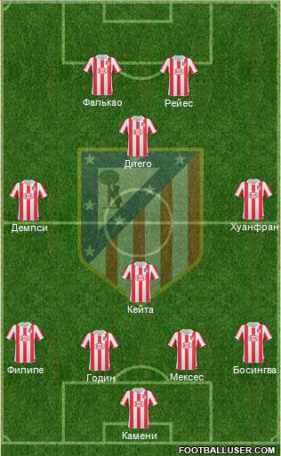 Камени · Годин · Мексес · Филипе · Босингва · Кейта · Демпси · Хуанфран · Диего · Рейес · Фалькао