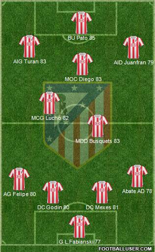 G L.Fabianski 77 · DC Godin 80 · DC Mexes 81 · AG Felipe 80 · Abate AD 78 · MDD Busquets 83 · MCG Lucho 82 · MOC Diego 83 · AID Juanfran 79 · AIG Turan 83 · BU Pato 85