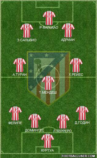 Sergio Asenjo · Perea · Godin · Filipe · A. Lopez · Tiago · Raul Garcia · Turan · Reyes · Diego · Falcao