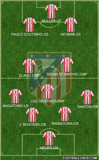 NEUER-GK · J. BOATENG-CB · RANNOCHIA-CB · SANTON-RB · NAGATOMO-LB · LUIZ GUSTAVO-DMF · ELANO-CMF · DEJAN STANKOVIC-CMF · PAULO COUTINHO-SS · NEYMAR-SS · MULLER-CF