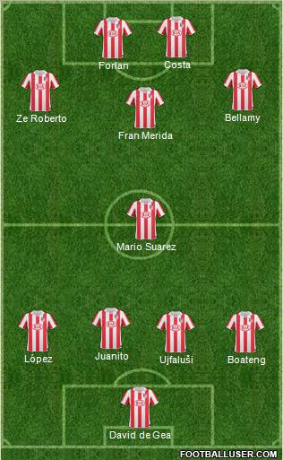 David de Gea · Ujfaluši · Boateng · López · Juanito · Mario Suarez · Fran Merida · Ze Roberto · Bellamy · Forlan · Costa