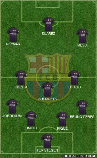 ter stegen · alba · mascherano · pique · umtiti · turan · iniesta · rafinha · messi · suarez · neymar jr.