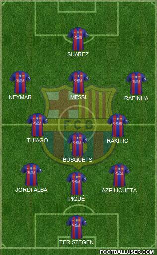 TER STEGEN · UMTITI · PIQUÉ · BELLERIN · JORDI ALBA · NAINGGOLAN · BUSQUETS · RAFINHA · NEYMAR · MESSI · SUAREZ