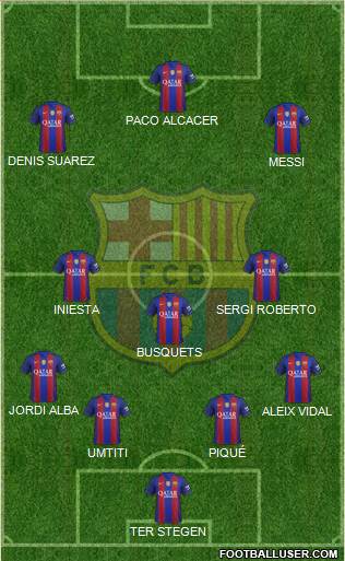 TER STEGEN · UMTITI · PIQUÉ · ALEIX VIDAL · JORDI ALBA · BUSQUETS · THIAGO · INIESTA · MESSI · NEYMAR · SUAREZ