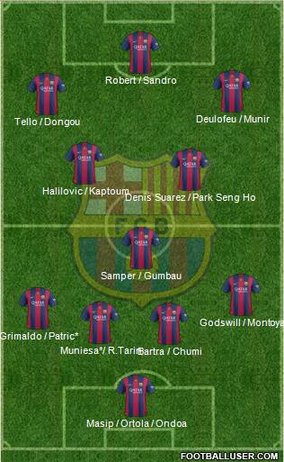 Ruffier · Reid[DC] · Dede[DC] · Jung[LD] · Alba[LI] · Busquets[MCD] · Fábregas[MC] · Kruse[IL] · Navas[ID] · Messi[MP] · Klose[DC]