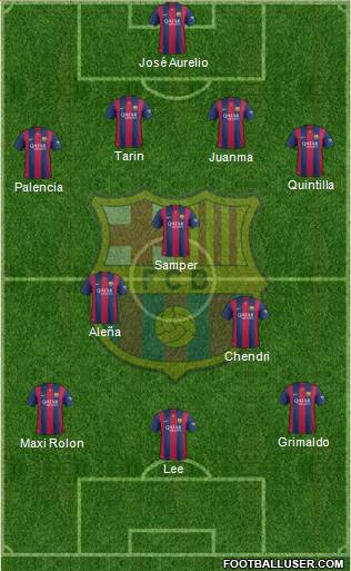 Masip / Ortola / Ondoa · Bartra / Chumi · Muniesa*/ R.Tarin · Grimaldo / Patric* · Godswill / Montoya · Samper / Gumbau · Denis Suarez / Park Seng Ho · Halilovic / Kaptoum · Tello / Dongou · Deulofeu / Munir · Robert / Sandro