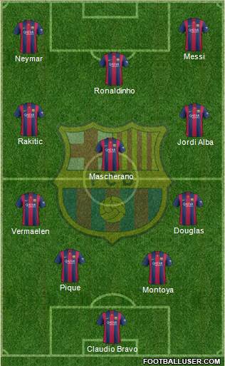 Bravo · Bartra · Pique · Alba · Alves · Busquets · Xavi · I.Rakitic · Neymar Jr. · Messi · Suarez