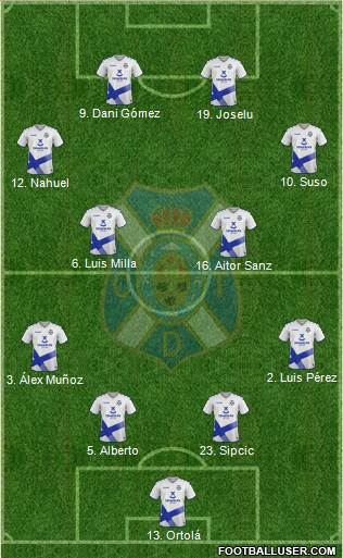 13. Ortolá · 5. Alberto · 23. Sipcic · 3. Álex Muñoz · 2. Luis Pérez · 16. Aitor Sanz · 6. Luis Milla · 12. Nahuel · 10. Suso · 19. Joselu · 9. Dani Gómez