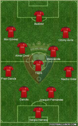 17. Budimir · 16. Moi Gómez · 14. Rubén García · 7. Moncayola · 10. Aimar Oroz · 6. Torró · 24. Catena · 5. David García · 22. Mojica · 15. Rubén Peña · 13. Aitor Fernández