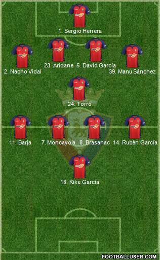 9. Chimy Ávila · 11. Barja · 7. Moncayola · 8. Brasanac · 14. Rubén García · 24. Torró · 2. Nacho Vidal · 39. Manu Sánchez · 4. Unai García · 3. Juan Cruz · 1. Sergio Herrera