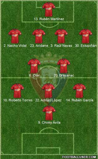 1. Sergio Herrera · 30. Estupiñán · 5. David García · 2. Nacho Vidal · 23. Aridane · 27. Moncayola · 21. Íñigo Pérez · 17. Rober Ibáñez · 14. Rubén García · 10. Roberto Torres · 7. Cardona