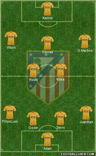 Oblak · Arias/Juanfran · Giménez · Lucas · Filipe Luis · Rodri · Koke · Saúl · Thomas/Correa · Griezmann · Diego Costa/Correa