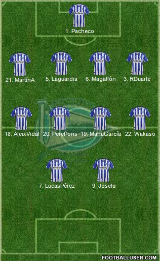 35. Ismael Gutiérrez · 7. Lucas Pérez · 29. Borja Sainz · 24. Oliver Burke · 20. Pere Pons · 14. Burgui · 19. Manu García · 9. Joselu · 18. Aleix Vidal · 17. Edgar Méndez · 10. Luís Rioja · 10. Camarasa · 15. Fejsa · 27. Alberto Rodriguéz · 8. Tomas Pina · 12. Rafa Navarro · 21. Martín Aguirregabiria · 23. Ximo Navarro · 5. Laguardia, ...