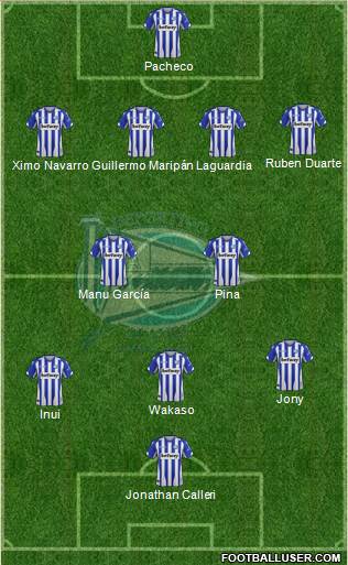 1. Pacheco · 4. Ely · 5. Laguardia · 3. Duarte · 15. Ximo Navarro · 20. Brasanac · 19. Manu García · 23. Jony · 11. Inui · 18. B. Bastón · 12. Calleri