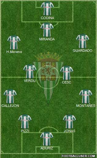CODINA · MIRANDA · H.Moreno · GUARDADO · VERDU · CESC · CALLEJON · MONTAÑES · PIZZI · JONAS · COLUNGA
