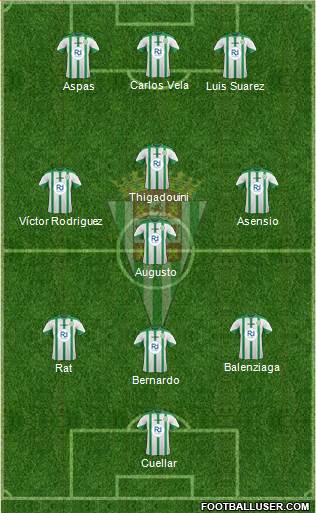 Cuellar · Bernardo · Duarte · Rat · Coke · Thiga · Asensio · Víctor Rodriguez · Carlos Vela · Luis Suarez · Aspas