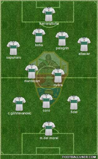 Toño/Herrera · Pelegrin/Lombán · Botía/Lombán · Albacar/Cisma · Sapunaru/Suárez · Rubén Pérez/Rivera · Javi Márquez/Generelo · Stevanovic · Corominas/Gil · Fidel · Del Moral/Powel