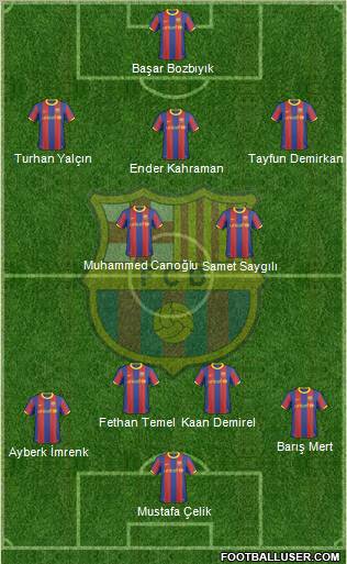 1.V.Valdes · 2.D.Alves · 16.S. Busquets · 22.E. Abidal · 19.Maxwell · 14.J. Mascherano · 6.Xavi · 8.A. Iniesta · 17.Pedro · 7.D. Villa · 10.L. Messi