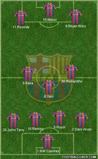 V.バルデス · ピケ · プジョル · マクスウェル · ダニエウ アウヴェス · マスケラーノ · シャビ · ブスケツ · イニエスタ · メッシ · ビジャ