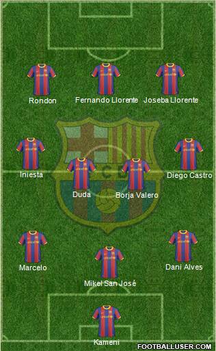 D.Villa · Messi · Afellay · Xavi · Iniesta · Mascherano · D.Alves · Maxwell · Puyol · Pique · V.Valdez