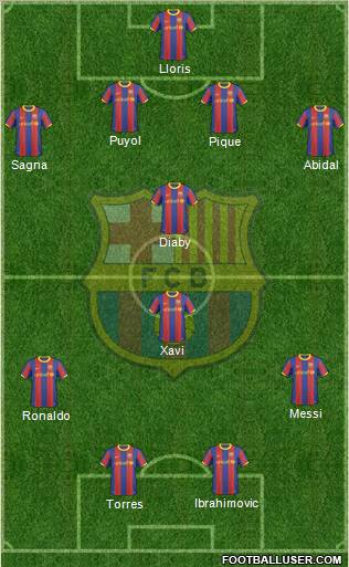 Valdes · Pique · Puyol · Abidal · Alves · Xavi · Y.Toure · Iniesta · Pedro · Messi · Villa