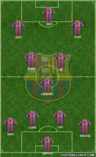valdes · puyol · pique · kaita · alves · busquets · iniesta · xavi · messi · villa · pedro