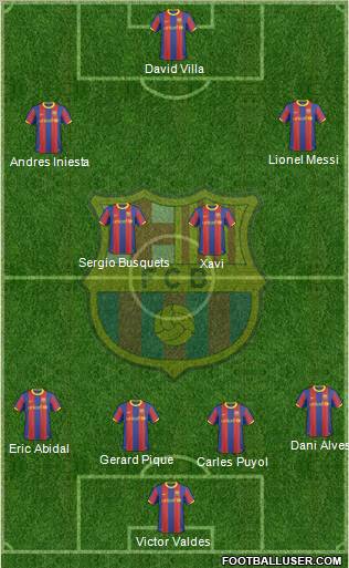 valdes · puyol · abidal · pique · alves · busqest · xavi · messi · inieata · predo · villa