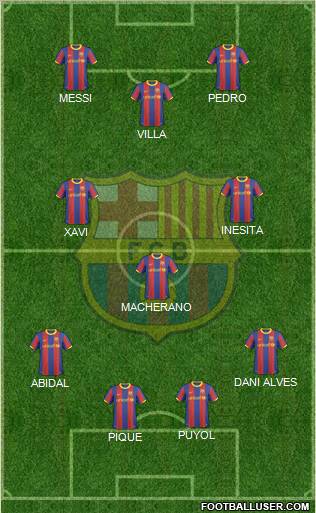 Buffon · Puyol · Pique · Maicon · Bastos · Pjanić · Xavi · Schweinsteiger · Robben · Messi · Lopez
