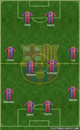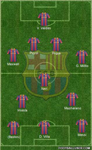 V.Valdes · G.Pique · C.Puyol · E.Abidal · D.Alves · J.Mascherano · A.Iniesta · Xavi · Ibrahim Afellay · Leo Messi · David Villa